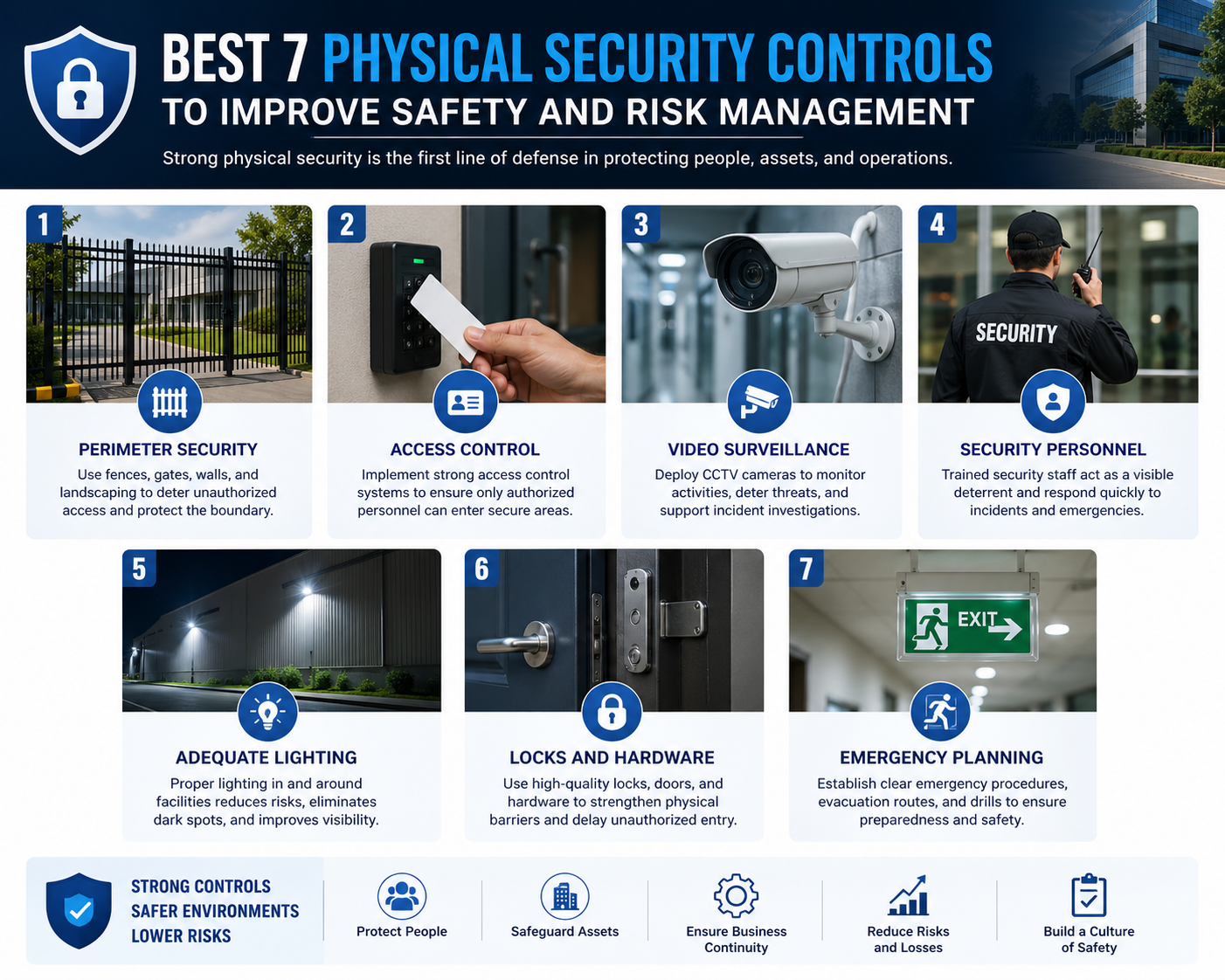 Modern organizations operate in environments where digital systems dominate business operations, but physical assets still form the essential backbone that enables everything to function. Offices, data centers, employee devices, networking hardware, storage rooms, and even basic infrastructure such as electricity and physical documentation collectively represent assets that must be protected to maintain business continuity. While cybersecurity frameworks focus heavily on protecting data, identities, and networks, physical security ensures that none of those systems can be compromised through direct human access or environmental interference. If an attacker can physically reach a server, workstation, or storage area, many digital protections become irrelevant because access can be gained at the hardware level. Physical security controls are therefore designed as structured, preventive, and reactive mechanisms that reduce the likelihood of unauthorized access while preserving the integrity, availability, and safety of organizational resources. These controls are most effective when implemented as part of a broader risk management strategy that aligns physical protection with operational priorities and threat levels.