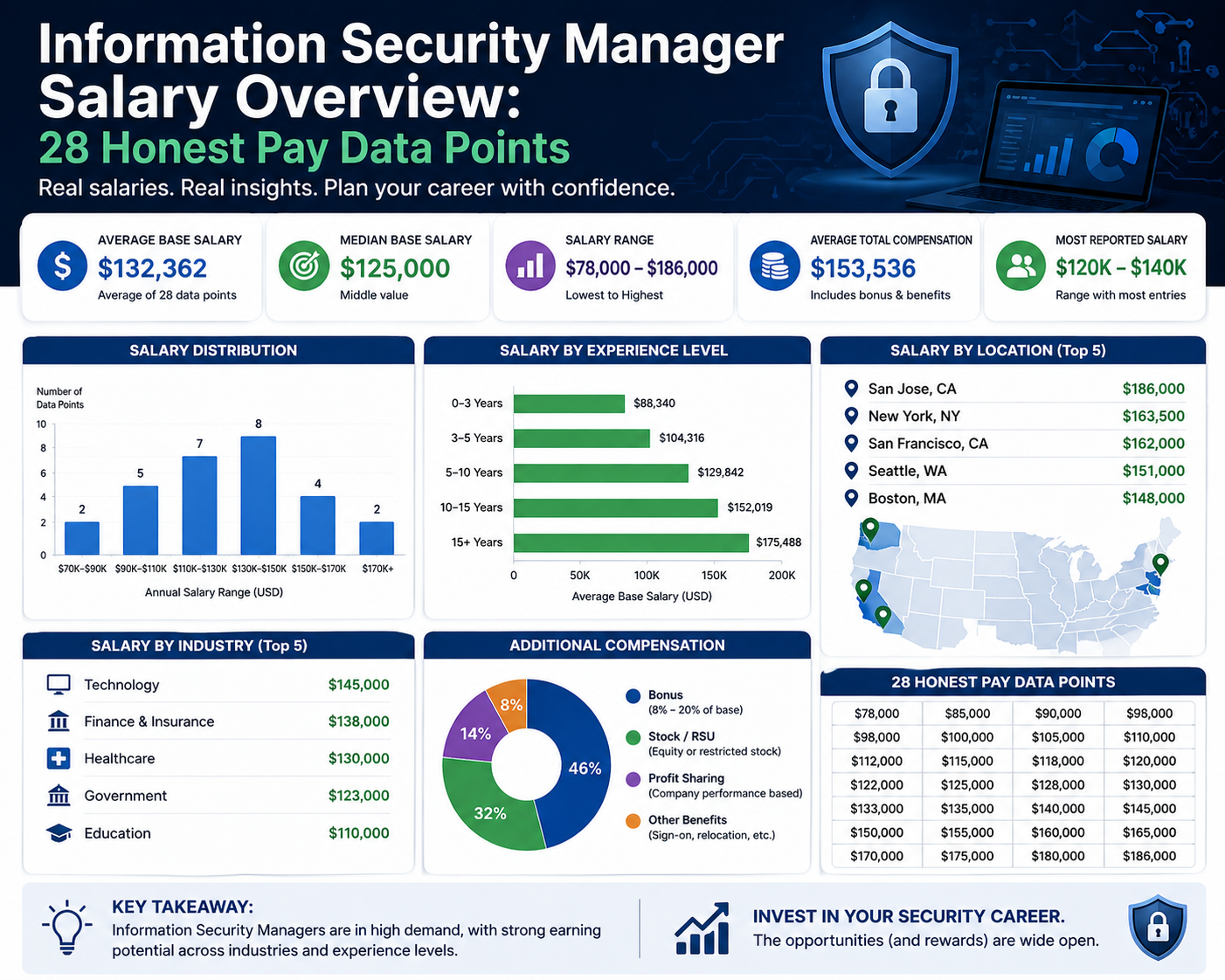Compensation trends also reflect the growing demand for skilled cybersecurity leaders. Information security managers are among the highest-paid professionals within the IT sector, with salaries influenced by factors such as experience, industry, location, and technical specialization. Organizations operating in high-risk industries such as finance, healthcare, and technology tend to offer higher compensation due to the critical nature of their security requirements. Similarly, professionals with expertise in cloud security, identity management, and regulatory compliance often command higher salaries due to the specialized nature of their skills.